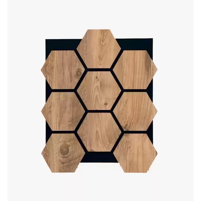 Wood grain MDFAcoustic foam backingHexagon modular designEasy adhesive install